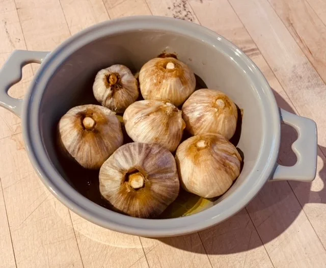 Our friends made it look so easy! They wrapped up different varieties in foil marked them to taste test the flavors and baked them as they made dinner. What we noticed most was how the sugars had carmelized and the garlic became a mellow, sweet, flavor and a soft texture that we had not known to be possible with garlic.